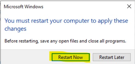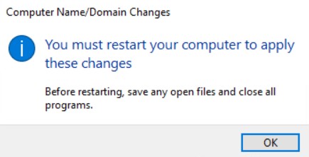 Then it will tell you that you need to restart for it to take effect. Click OK