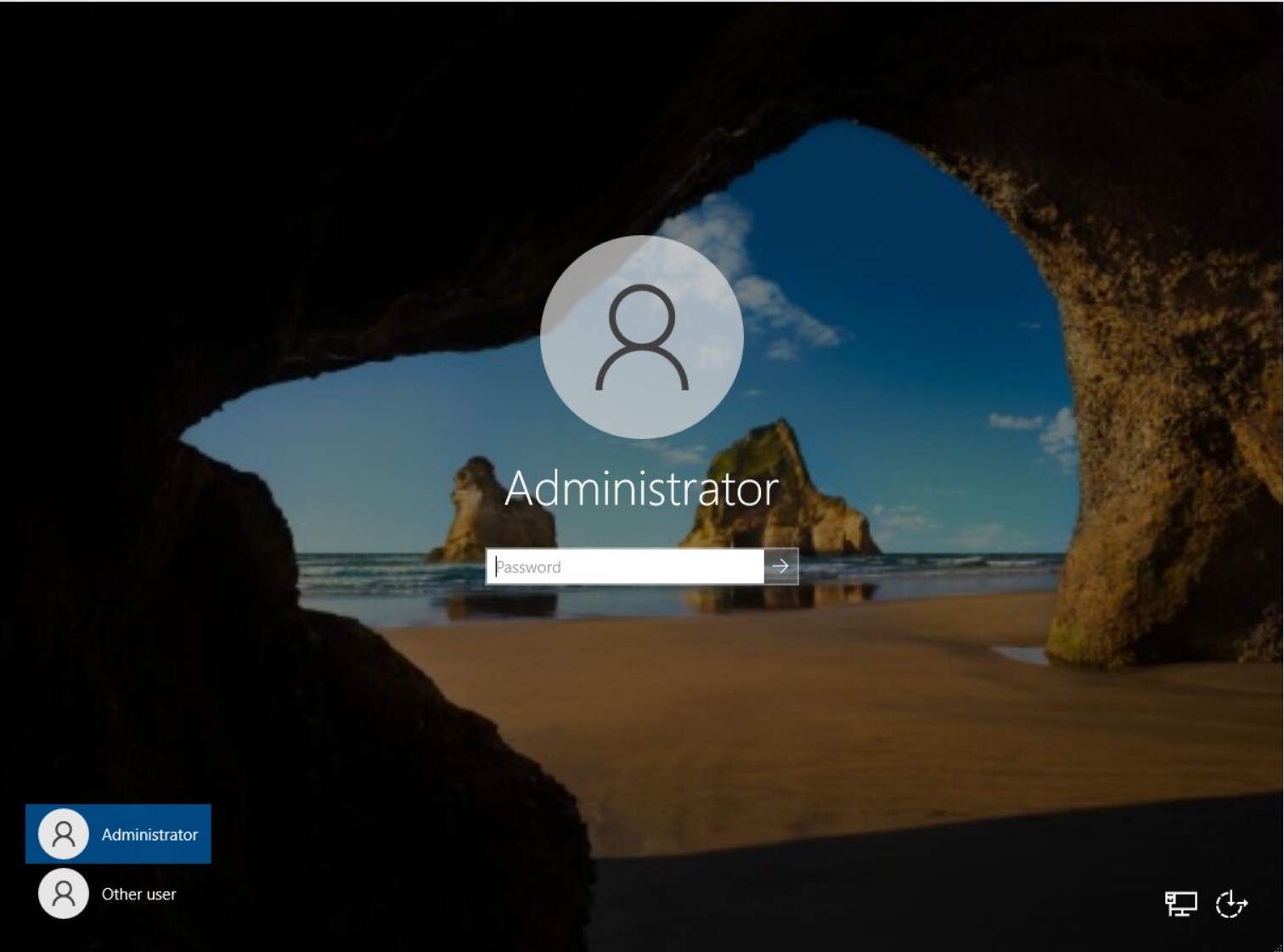 Once we're logged out we'll be brought back to the Log in screen and from here we'll log in as the local administrator. Once again press CTRL + ALT + DEL and then log in as using .\Administrator and the administrator password you created after completing the installation of Windows.