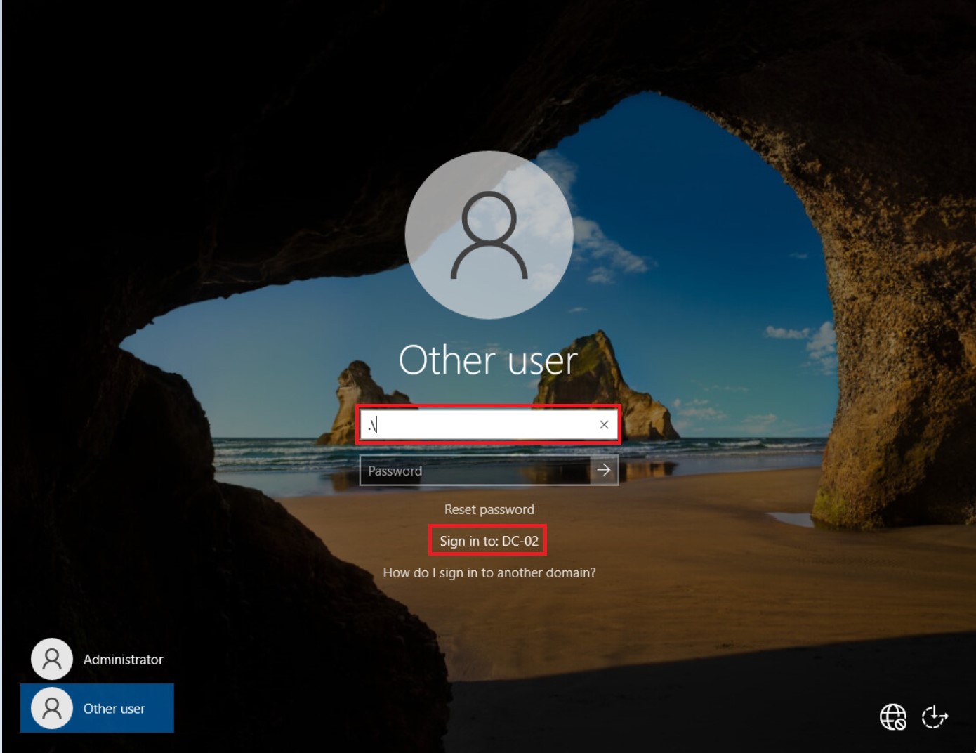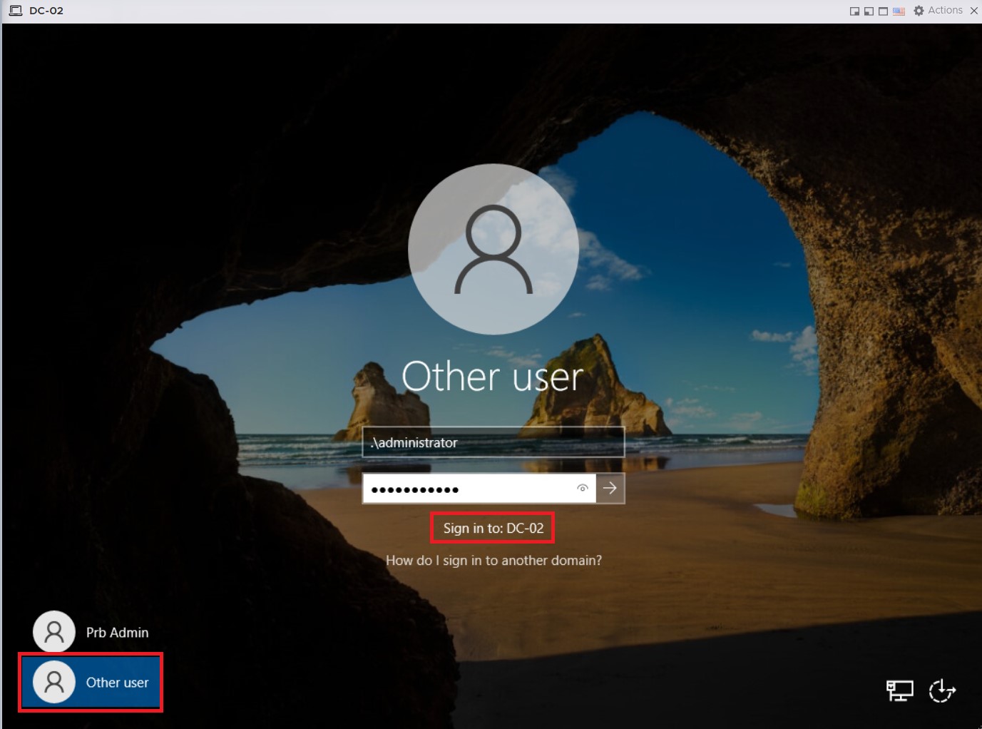 Let's try logging into our Local Account on DC-02, at the login screen click on Other user