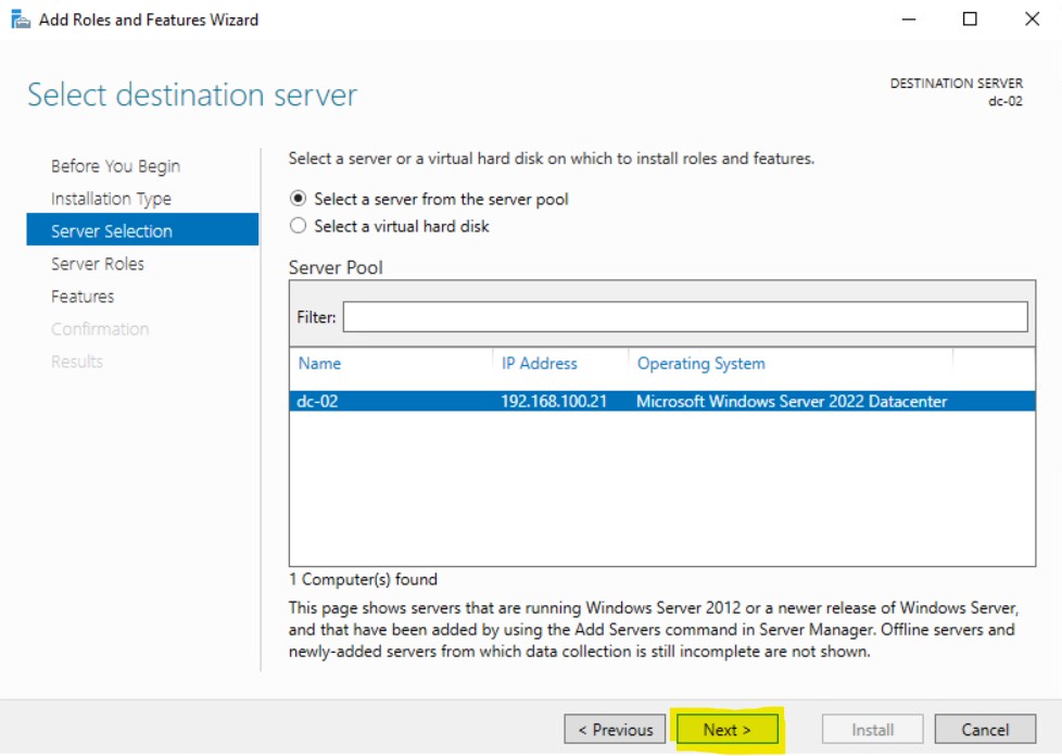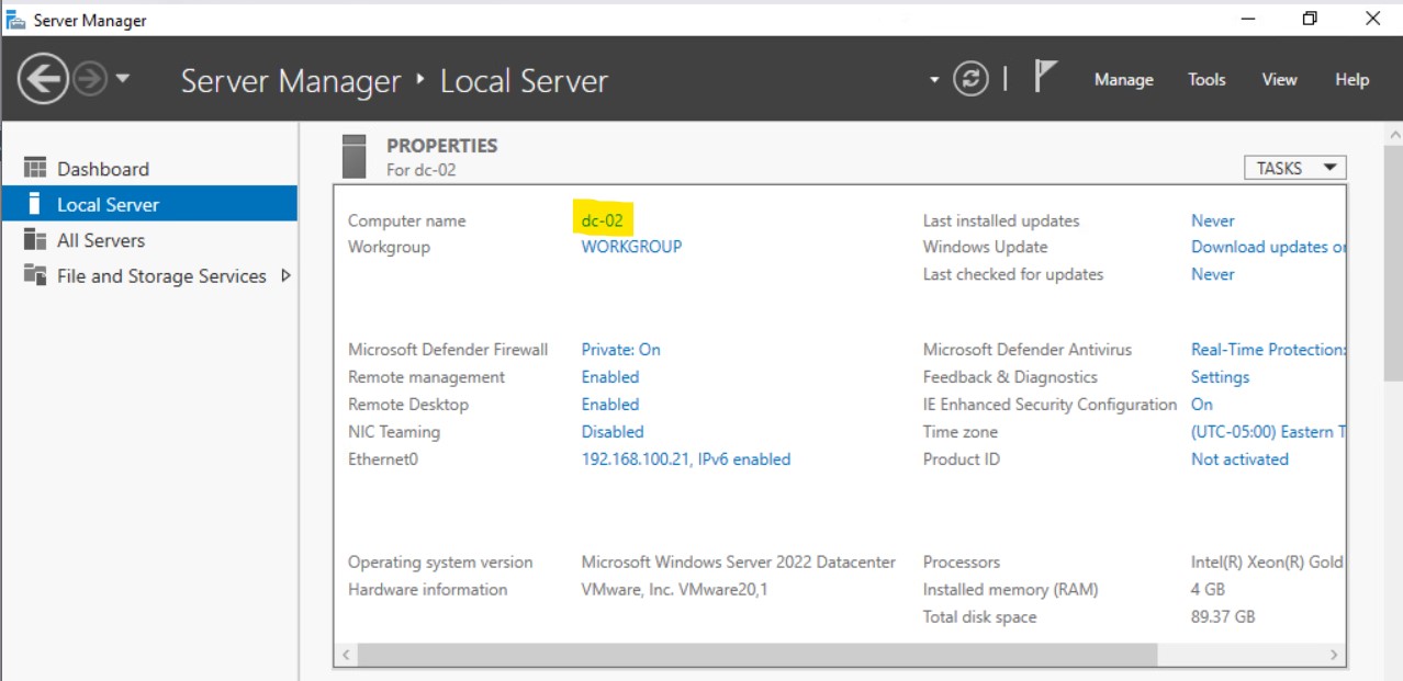 In the previous section we created a New Domain Controller called: DC-01 you can find that setup here: DC-01. Now we're going to be creating a new domain controller. I've essentially built a new Windows Server and called it: DC-02 following the same methods I did in this page: Windows Server Installation. The only things I changed here where was the name of the Virtual Machine, the Hostname and the IP address where I used: