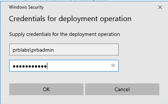 We'll explore more about credentials as we go along. For now, Let's sign in using a domain credentials. I'll use my prbadmin credentials and then I'll press enter.