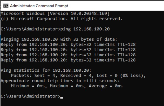 The answer is yes, but what this means is that they are in the same network so yes they can communicate with each, but when it comes to name resolution. dc-01's domain name is dc-01.prblabs.ca, DC-02 knows go to get to 192.168.100.20 because our gateway handles that but when it comes to name resolution, we are relying on Google's and Cloudflare's DNS which does not know what DC-01 is and what it's IP address is. We can see that by trying the following command in CMD: