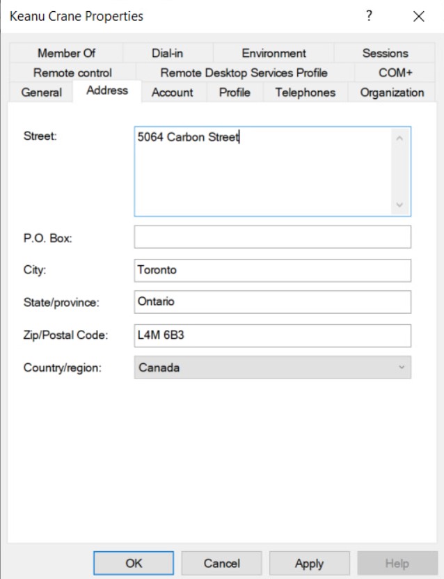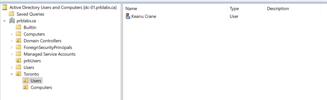 Now If I were to look inside of my Users OU under my Toronto OU. I can see my new User Keanu Crane has been created and is active.
