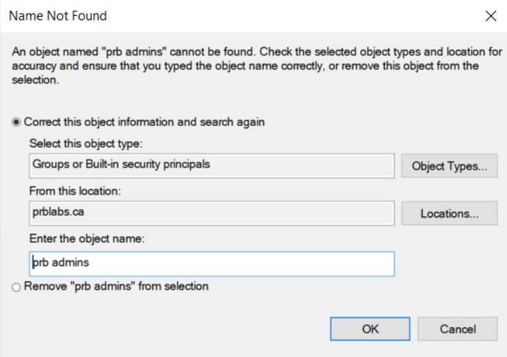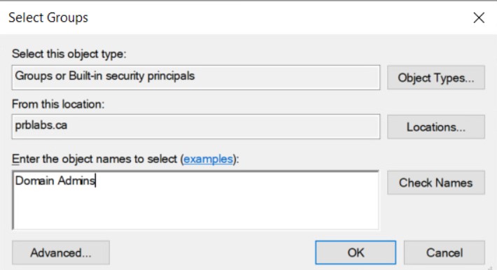 Then click Check Names and you will see your Domain Admins name will now have an underline below it.