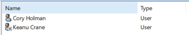 And now you can see I have both Keanu Crane and Cory Holman user accounts setup.