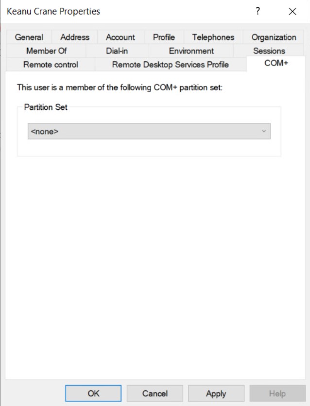 The COM+ tab in Active Directory Users and Computers (ADUC) is used to manage COM+ (Component Object Model Plus) permissions for a user or group. COM+ is a Microsoft technology that provides a framework for developing and deploying distributed applications and services, allowing software components to communicate across networks. This tab is relatively advanced and is typically used in enterprise environments with custom applications that rely on COM+ components.