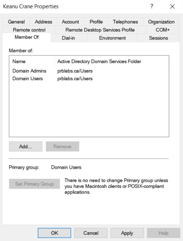 In AD, each user has a primary group (usually Domain Users by default). The Primary Group setting in the Member Of tab allows administrators to change this primary group, but it is rarely necessary for most environments.