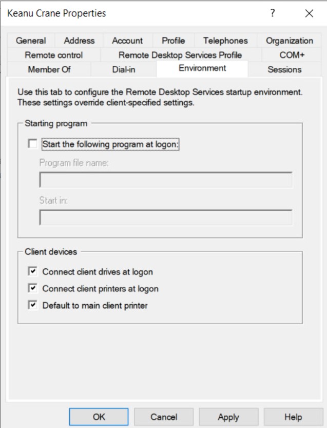 Override user settings: This option forces the Environment tab settings to apply to this user, regardless of other settings they might have.
