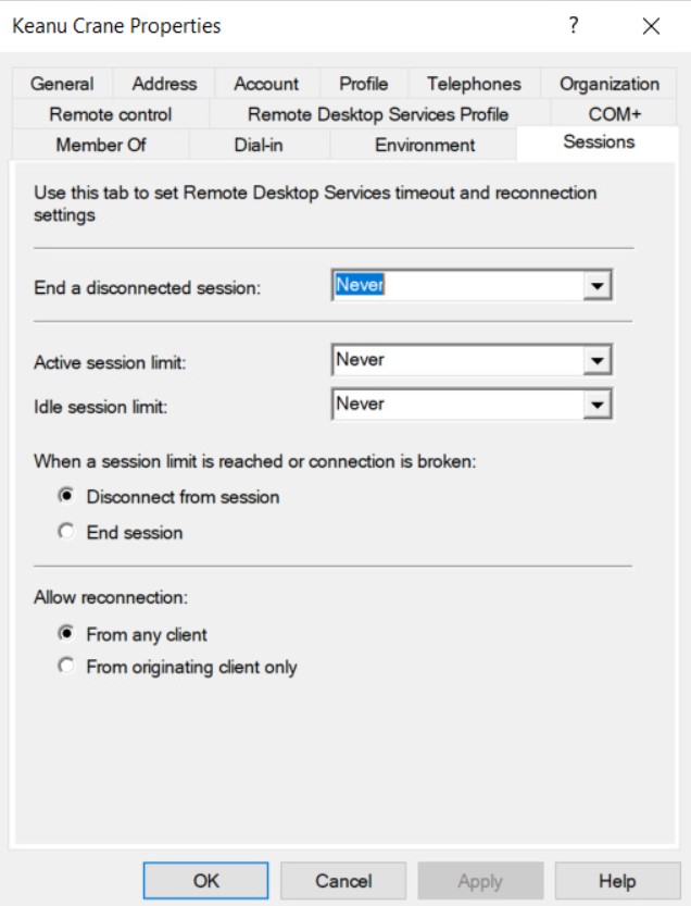 Allow reconnection: Controls whether the user can reconnect to their session and, if so, from where.